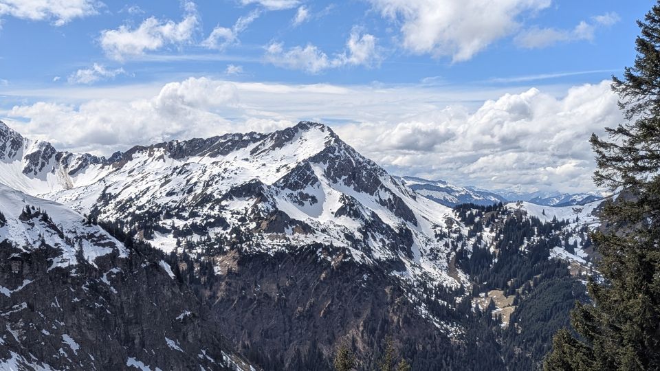 Kaum Schnee in der südexponierten Flanke, immer nur kurz und meist auch umgehbar. Wege teils etwas schmierig.