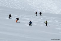 Natürlich waren wir nicht ganz alleine unterwegs. Die erste Welle startet ca. 6 Uhr ab der Längflue Hütte, die zweite mit der Ankunft der ersten Bahn.