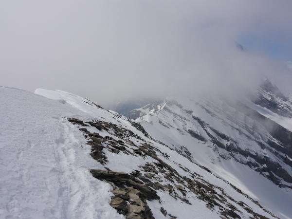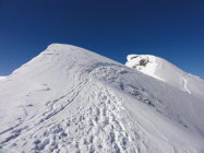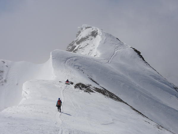 Bedingungen auf dem Zackengrat: stark verwächtet (Vorsicht bei der Spurlegung!), für Schneeschuhe gut.