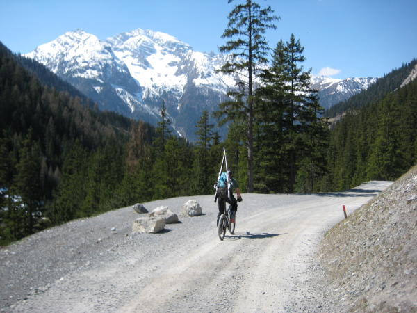 Mit dem Bike bis vor Alp digl Chants. In den Haarnadeln von "La Bloch" ist die Strasse eisig schneebedeckt, ebenso von Chants hinauf zur Alp. Das biken lohnt sich jedoch sehr.