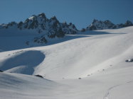 Auf dem Gletscher z.T. Pulver, z.T. Umbruchschnee, der jedoch gut fahrbar ist.