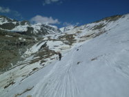 die schneebedingungen sind an sich sehr gut. nur sind auch weit oben die südhänge teilweise schon aper. auch der weg bis zu den gondeln wird bald zu fuss gemacht werden müssen.