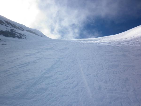 Auch Abfahrt durch die Wand im Moment lohnenswert, vor allem der untere Teil dürfte ein Traum sein.