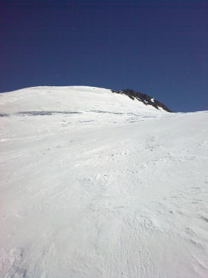 Gletscher noch sehr gut angeschneit. Am späten Morgen am Allalingletscher griffige Decke, super zum Laufen. Spur im Couloir links vom Adlerpass teilweise gut, teilweise überfahren (Harscheisen von Vorteil). Gipfelhang stark vom Wind geprägt. Letzte 20 Hm zu Fuss, teilweise Blankeis aber gute Tritte. Bei der Abfahrt erst ab etwa 3400 Sulz. Gegenaufstieg zur Britanniahütte nass (15 Uhr).