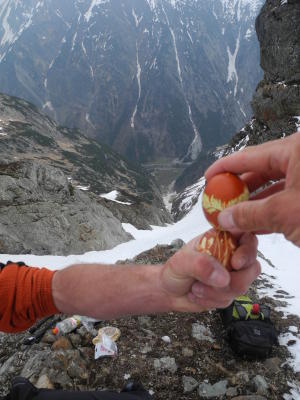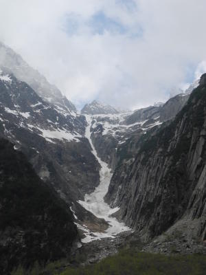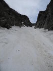 Alle Seitenwände entleert,Rinne gefüllt mit Lawienenschnee,unten mit Steinen gesprenckelt.