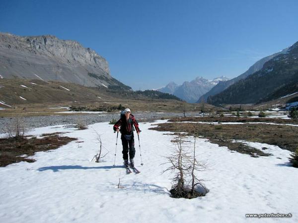 Sehr schön, sehr warm. Im Bachbett neben dem Sagiwald hat es noch etwas Schnee. Dann müssen die Skis auf dem Wanderweg unter der kleinen Felswand hindurch getragen werden. Ab ca. 2'100 m hat es dann durchgehend Schnee bis fast auf den Gipfel. Bei der Abfahrt um ca. 13 Uhr toller Sulz.