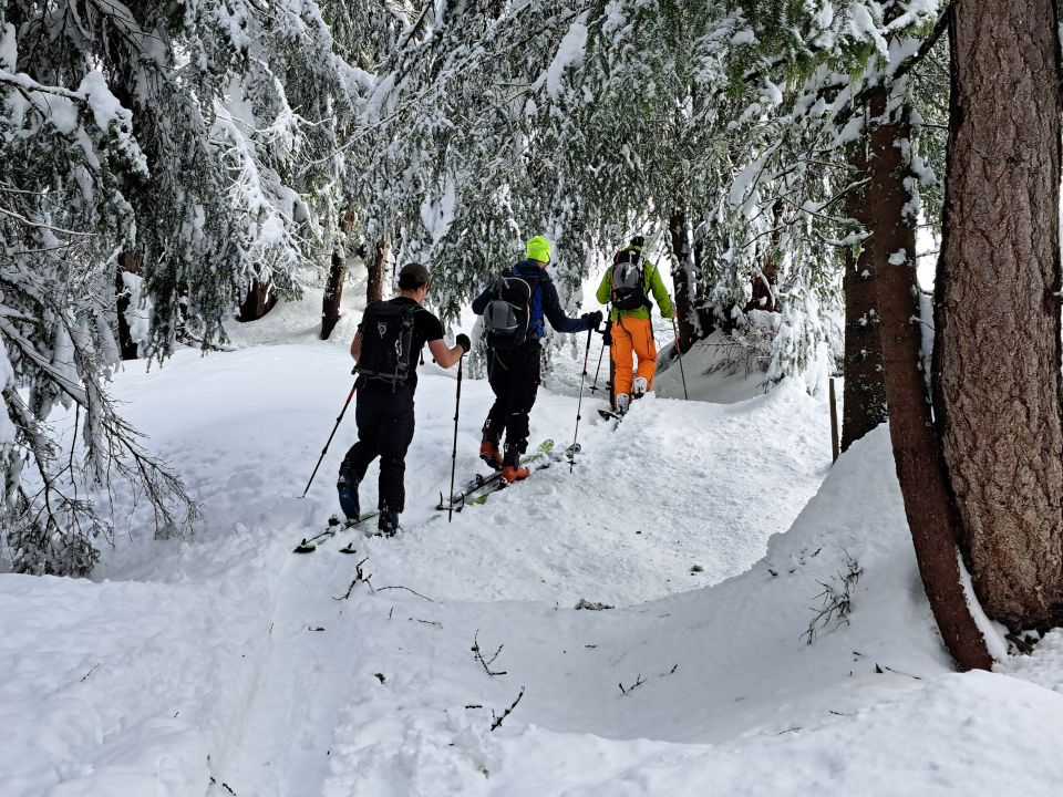 Erstaunlich, dass man um diese Jahreszeit noch in Guttet starten und wieder ganz nach unten fahren konnte. In höheren Lagen wären Touren heute wegen dem vielen Neuschnee sehr heikel gewesen.