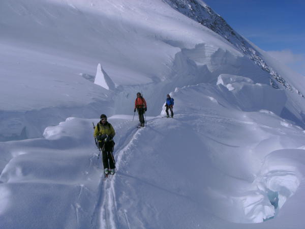 Im Aufstieg zum Silbersattel gilt es eine Spalte zu überklettern (ca 3m),Rest problemlos.
