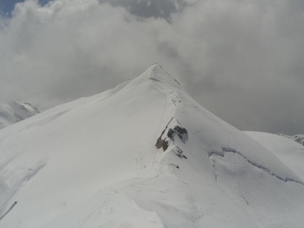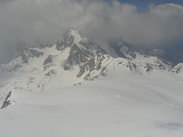 wir sind nach dem Cevedale den Verbindungsgrat bis zur Zufallsspitze gegangen; die Felsen im Mittelteil haben wir auf der Südostseite umgangen; Abfahrt vom Joch zwischen den beiden Gipfeln; hier ist auch um Vorsicht geboten wegen Blankeis im oberen Bereich;