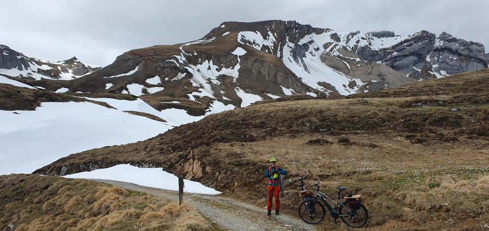 Die Erwartungen für eine Frühlings-EBike & Hike Tour wurden voll erfüllt. Ab 2700m bis zum Gipfel hat man mit dem Schnee etwas alpine Verhältnisse, aber das geht gut. Abgesehen von vielen Tieftritten, da die nasse Schneedecke oft ohne Harstdeckel war. Der zügige Föhn kühlte uns zudem ziemlich aus.
