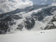 Nach kalter Nacht nicht zu früh aufbrechen, da sonst im Gipfelbereich in den steilen Schneefeldern sehr hart, Firn in Abfahrt abwarten.