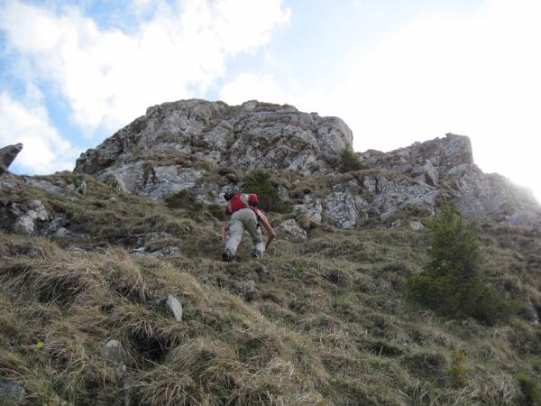 Am Westgrat in der steilen Runse liegt immer noch Schnee. Womöglich ginge der Aufstieg frühmorgens, wenn der Schnee noch gefroren ist. Am Mittag war uns die Sache zu heikel. Bis zum oberen Schneerand sind wir abgestiegen und haben uns anschliessend ein zweites Mal zum Gipfelkreuz bewegt... ;-), was die Höhenmeter erklärt.