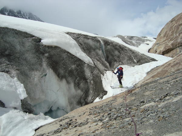 Lawinenabgänge (nass) am Nachmittag bei bereits aufgerissenen Schneemäulern an der Querung der Flanke südlich des Bachbettes unterhalb des Märjelesees; besser nördlich des Bachbettes im Geröll bleiben, bis der Hang flacher wird
