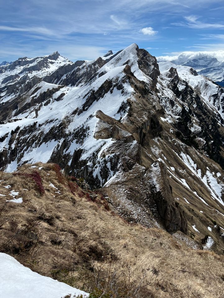 Im Absieg nach Alplen bis ca. 1700m durchgehende Schneedecke, meist Lawinenschnee.