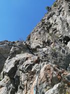 Hector 5a Der Klettergarten bei Dorenaz bietet verschiedene Kletter-Sektoren, die alle ausgezeichnet abgesichert sind. Wir waren im Sektor Graviere, und konnten einige Routen im besten Gneisfelsen klettern.