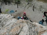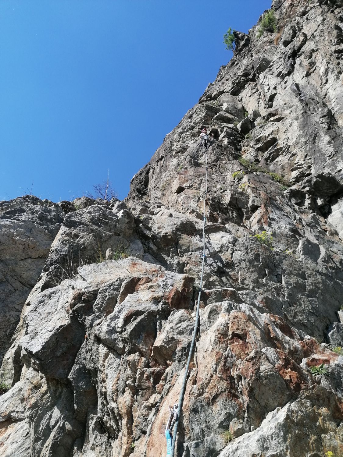 Standard Ausrüstung für Klettegarten. Für einige Routen empfiehlt sich ein 2 mal 50m Doppelseil.
