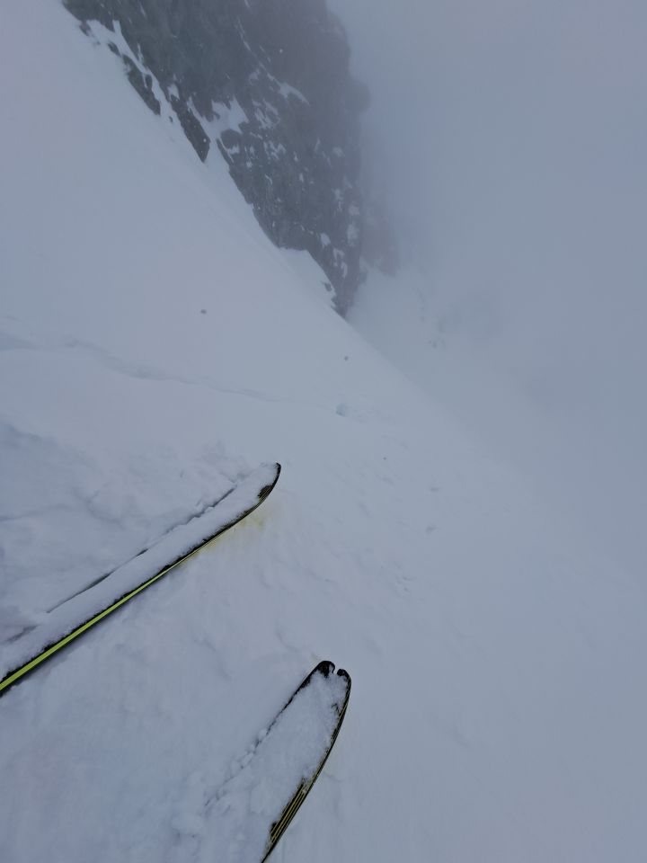 Wechselhaftes Wetter, Schnee ist genug, oberhalb 2400 m sehr gut verschneit, die letzte Schneebrücke über den Bach zu Beginn bricht demnächst ein, die einzige Brücke befindet sich weiter unten.