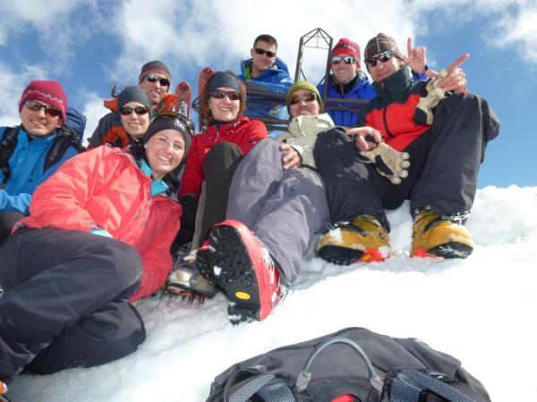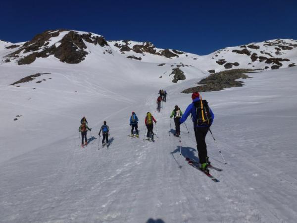Heute war fast die komplette Truppe am Start. Rege Diskussionen im Aufsteig über Gott und die Welt, neue Tourenziele usw. Kurze Znünipause oder war's doch eine Zenipause ;) beim Bivacco. Anschliessend gings mit neuer Energie dem Skidepot entgegen, einige hatten wohl zu viel Energie gedankt ;-)! In schöner Kletterei zum Gipfel hoch - die einten gingen wieder zufuss zum Skidepot, für die anderen hiess es Latten anschnallen und ab in die Ostflanke. Super schöne Tour mit anschliessender Einkehr in Splügen.