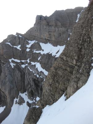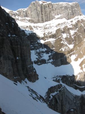 Auf dem Grossen Band sieht man, dass vor einiger Zeit an einer Stelle ein massives Schneebrett mit ca. 2m Dicke abgerutscht war.