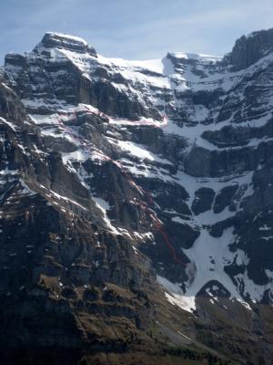 Vor allem das Grosse Band und die Ausstiegsrinnen sind dem Steinschlag ausgesetzt. Im Verlauf des Tages können sich auch Nassschneerutsche ergeben. Darum möglichst früh starten