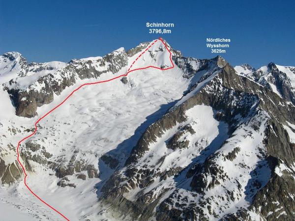 Die Sommersaison am Schinhorn hat begonnen. Wegen oft aperem Zustieg für Ski nicht mehr lohnend. Nach grösseren Neuschneefällen einige Tage warten.