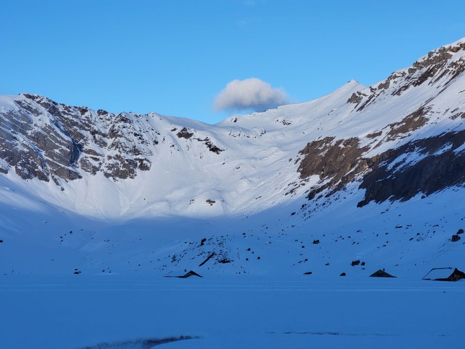 Meine zweite Tour heute auf der Engstligenalp, nachdem ich unter dem Tierhöri wegen dem Triebschnee umgekehrt bin. Start um 09:50 Uhr im hinteren Teil der Ebene der Engstligenalp. Schnee um diese Zeit bereits sulzig. Gute Aufstiegsspur bis 2400m, danach ging die Spur nicht zum Ammertepass, sondern sehr steil durch die Gipfelflanke und dann links auf den Grat. Beim Ausstieg auf den Grat sind mehrere Leute abgerutscht, dieser war ziemlich sketchy. Auf dem Grat bin ich mit Harscheisen auf dem Gipfel, das ging gut. Leider windete es sehr stark und plötzlich ist Nebel aufgezogen. Die Abfahrt war darum ziemlich blind. Der schwere Sulzschnee war nicht einfach zu fahren. Wenn man dem verspurten Gelände auswich, war es ganz okay.