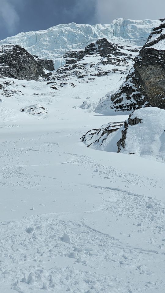 Der Erste Teil der Westflanke ist gut zwar nicht überall firn aber dafür guter Tritschnee. Ab 3700 dann Bruchharsch unter dem sich Pulver versteckt. Je nach aufstiegsroute verstecken sich die Felsen ca. 15-20 cm unterm schnee aber bei der Abfahrt kein problem gewesen. Abfahrt knapp unterm Gipfel ohne Probleme bis zum Eigergletscher.