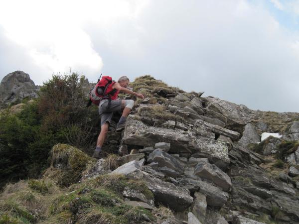 Nicht markierter und nicht durchwegs auf der Karte ersichtlicher "Weg" am NNW Grat ab P 1666. EB, geschätzt T3+. Die Hände kommen selten zum Einsatz im Aufstieg.