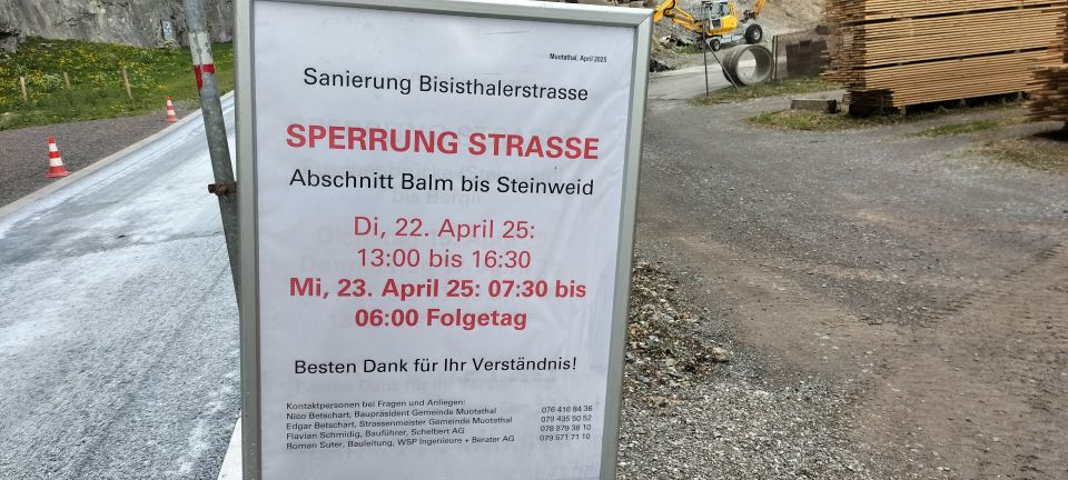 Infos: Diese Woche wie auch die nächste ist die Bisisthalerstrasse wegen Belagseinbau gesperrt, es gibt immer wieder Wetter bedingte änderungen !!!!