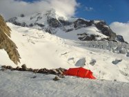 Direkt auf den Gletscher abseilen, ab dort mühsamst in 7-schichtigem Bruchharst-Sulzschnee zum Schneeschuhdepot. Mit diesen dann wesentlich bequemer zurück.