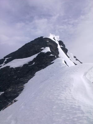Bin heute Morgen um 03:00 Uhr von der Kleinen Scheidegg aus gestartet, dies bei sternenklarem Himmel. Doch um 05:00 Uhr hat es leicht überzogen und es gab ein paar wenige Regentropfen. Entschied mich dennoch, weiter zu laufen. Bis zum Ausstieg des Klettersteigs Rotstock musste ich die Ski tragen. Ab Rotstock hatt es dann genügend Schnee, um über zahlreiche Lawinenkegel Richtung Steilstufen hochzusteigen. Ab etwa Höhe 3'000 MüM war dann Schluss und ich zog die Steigeisen an. Es war mehrheitlich guter Trittschnee, aber der Hang apert sehr schnell aus und die Blankeis-Stellen werden immer grösser. Zu meiner Ankunftszeit um 09:00 Uhr war der Gipfel zum Teil in Nebel gehüllt. So entschied ich mich, mit den Steigeisen auf etwa 3'600 MüM abzusteigen und von da aus mit den Skiern unter den Füssen weiter zu fahren. Die Abfahrt wurde unter dem Hängegletscher kurz unterbrochen, die Schneefläche ist nicht mehr duchgehend und ich musste die Skier kurz schultern. Das Firnfeld war um 10:00 Uhr noch pickelhart bis eisig. Unterhalb des Hängegletschers sehr grosse Lawinengraben.