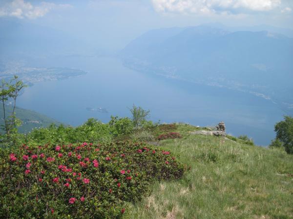 Lang gehegter Wunschberg an der Grenze zu Italien. Leider war uns die Fernsicht nicht gegönnt, viel zu tropisch waren die Bedingungen. Wunderhübsche Passagen durch lichte Birkenwälder, geschmückt mit Alpenrosen, z.T. Riesenexemplare, welche herrlliche Farbtupfer ergaben. Die roten Felsenprimel am Grat ebenso.