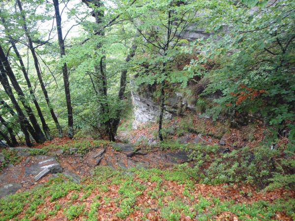 Feuchte Wegabschnitte nicht störend, der nicht markierte Ostzustieg zum Gipfel verbuscht stellenweise, die regennassen Zweige liessen uns ein 2. x duschen... ;-)