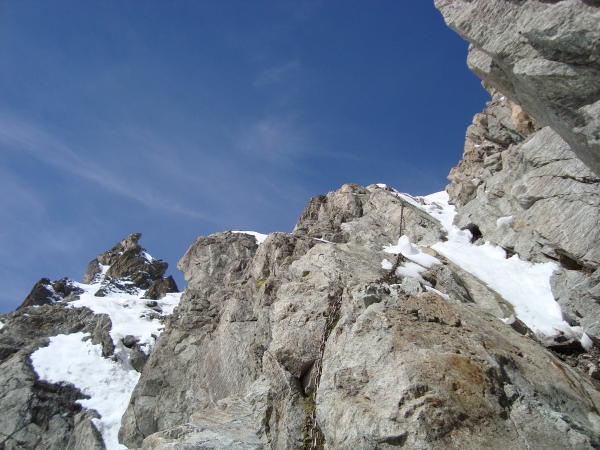 Das Unternehmen Kesch sah am Anfang nicht schlecht aus, +1Grad in Lenzerheide und vom Pass bis zur d'Es-cha alles wie letztes Jahr,nur 5 Wochen früher. Start am Pass um 7.15Uhr, Vadret Porchabella 9.40Uhr. Für heute aber definitiv zu spät. Von Pt.2808 bis Vadret war reinste Wühlarbeit, aber die Ketten sind jetzt freigelegt. Hoffte insgeheim, dass der Gletscher hart sein würde, was leider nicht der Fall war und mir heute als Sologänger zu riskant erschien. Auch den Nordostgrat erhoffte ich mir trocken und wo Schnee, sollte er Steigeisenhart sein und nicht Pudding!! Tja, so Pickelte ich mich stattdessen zu Pt.3099 hoch und genoss den Einstieg in die Sommersaison paar hundert Meter tiefer. Was solls, die Saison isch uf jedafall eröffnet. Dia hüttig Tour wird unter Erkundig abbuacht :)