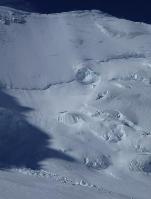 unser eigentliches ziel, die nordwand des grossen altschhorns, ist oben raus blank und unten mit grossen spalten durchzogen.