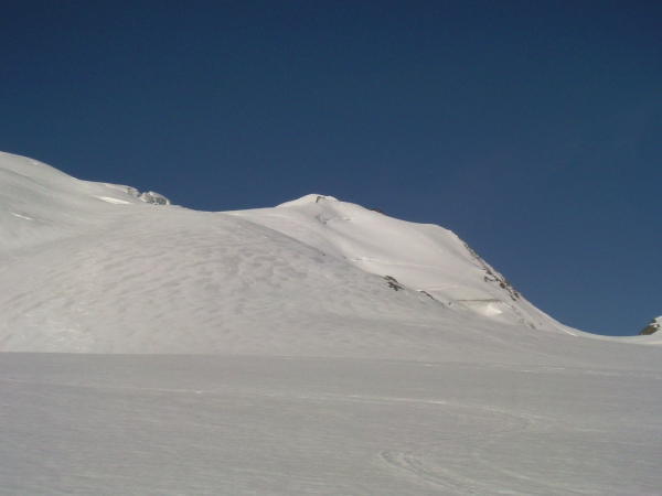 Ganz oben im Gipfelbereich ist ein Fussgänger mit einem Bein in die Randkluft getreten, wenn ich die Spur richtig gedeutet habe. Es ist nicht alles so ungefährlich, wie es aussieht...