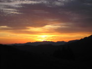Lauwarme Nacht, stockdunkel, funkelnde Katzenaugen, Lindenduft, rennende Igel und dazu noch einen herrlichen Sonnenaufgang? Ein früher Start machts möglich, schlafen kann man schließlich noch im Holzpyjama, hörte ich einst einen sagen. Mit Stirnlampe bewaffnet dem Ziel entgegen. Der Wegabschnitt ab der Staffelalpe zur Kugelalpe wurde in einen Top-Zustand versetzt, hier hatte es auch schon übelsten Grobschotter, danke! Die letzten Meter zum Gipfel durch tiefe Erdfurchen sind nicht mehr fahrbar, höchstens abwärts. Schönes Naturschauspiel, absolute Ruhe und eine schöne Abfahrt beinhaltet diese Tour. Ab dem Fraxner Sportplatz rechts hinunter, dann wieder hinauf ins Götzner Moos, der Forstweg durch den Wald ist nass und stellenweise schmierig, aber man kommt gut voran. Schwungvoll gehts hinab über Orsanka nach Klaus, viel Fun bietet eine gute Federung in den kurvigen und teilweise steilen Passagen.