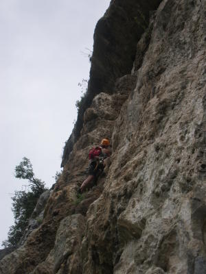"Archai" 350m, 11 SL; VI+, A0/RS2/II (gemäß Filippis "Hohe Wände im Sarcatal") von H. Grill, F. Heiss, S. Konigsedel 2006