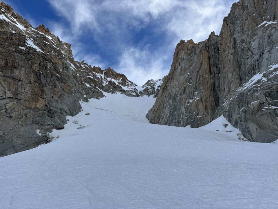 Relativ wenig Schnee im Gebiet, aber immer noch gut. Spaltenzonen können gut umgangen werden. Randspalte ist gut zu überschreiten.
