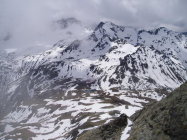 Im Zustieg zur Forcla (vor allem an Nordhängen und Mulden), sowie vereinzelt auch am Grat hat es noch einige Schneefelder. Dieser Schnee ist ziemlich nass. Ein Pickel oder Wandstöcke leisten hier sicherlich gute Hilfe. Der Felsgrat selber war prima trocken und auch der Nebel verzog sich im Laufe des Tages.