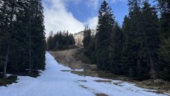 Die weitere Abfahrt gestaltete sich schon eher klebrig (Bergrider-Verhältnisse), aber noch fast durchgehend fahrbar, wobei die Piste Rot (Abfahrtsrichtung links) sich doch als besser erwies als die rechte.