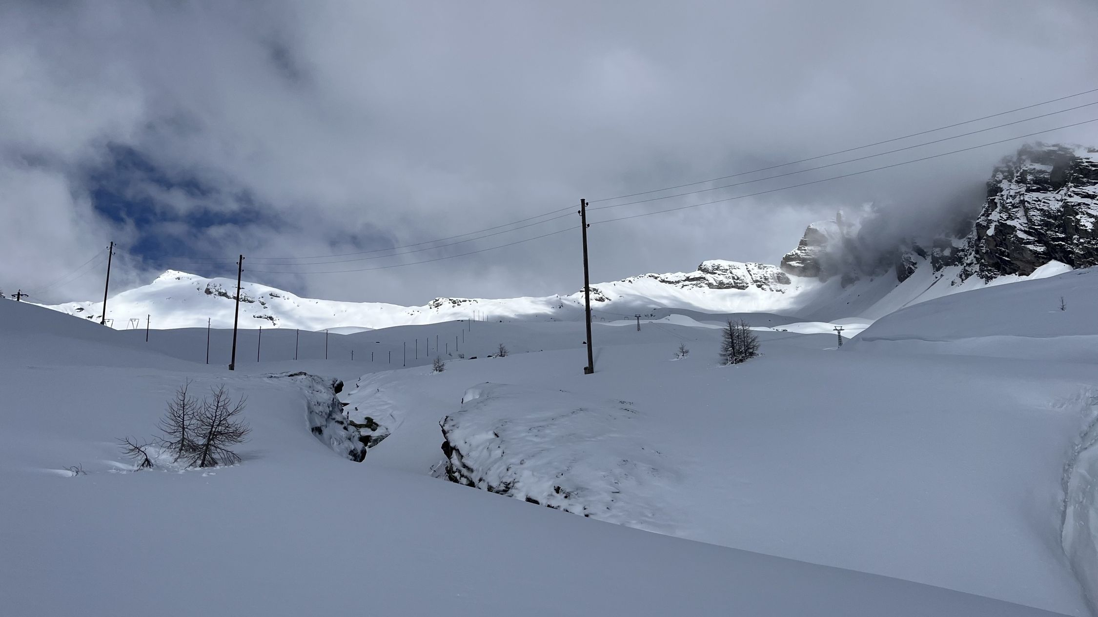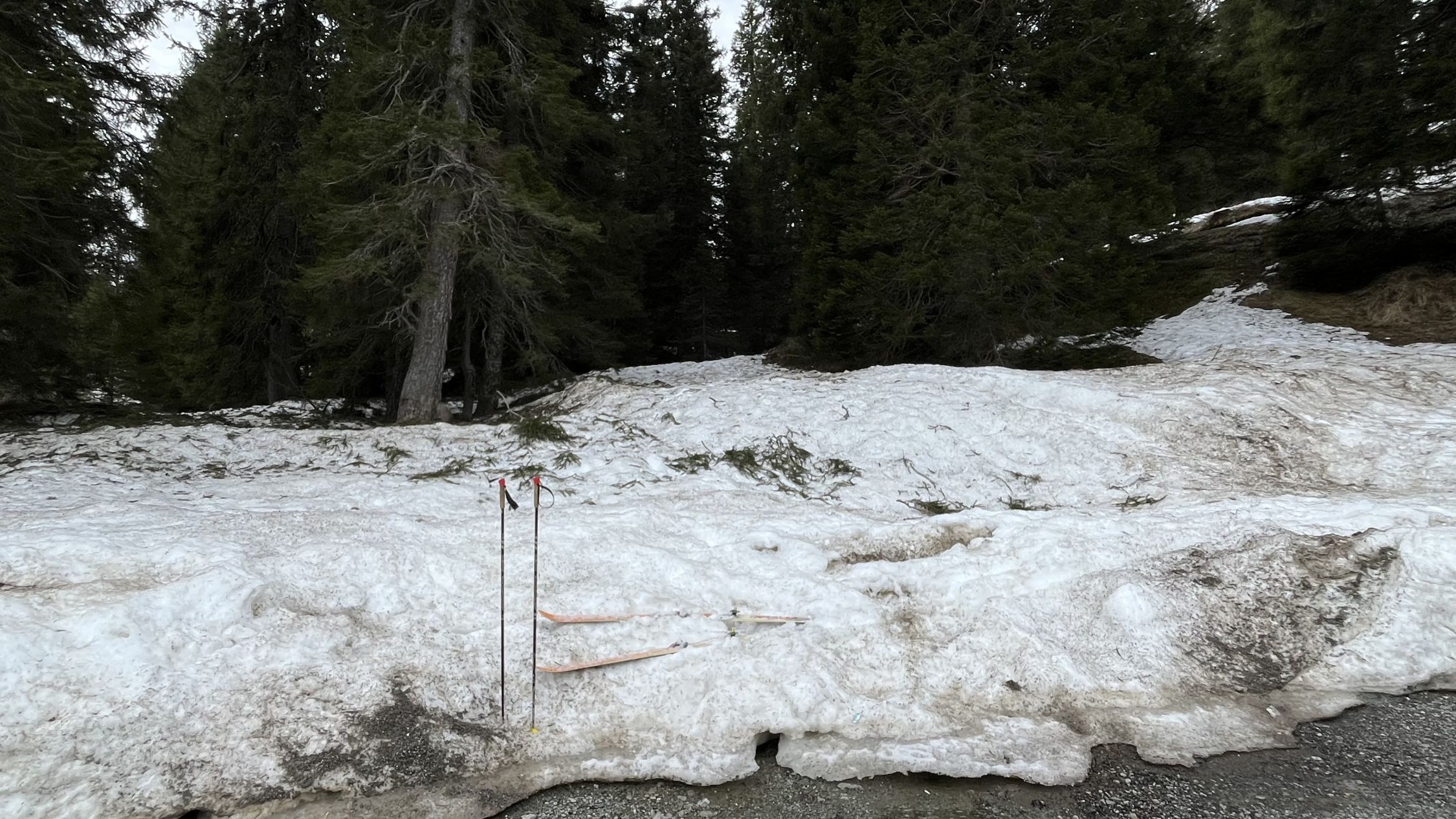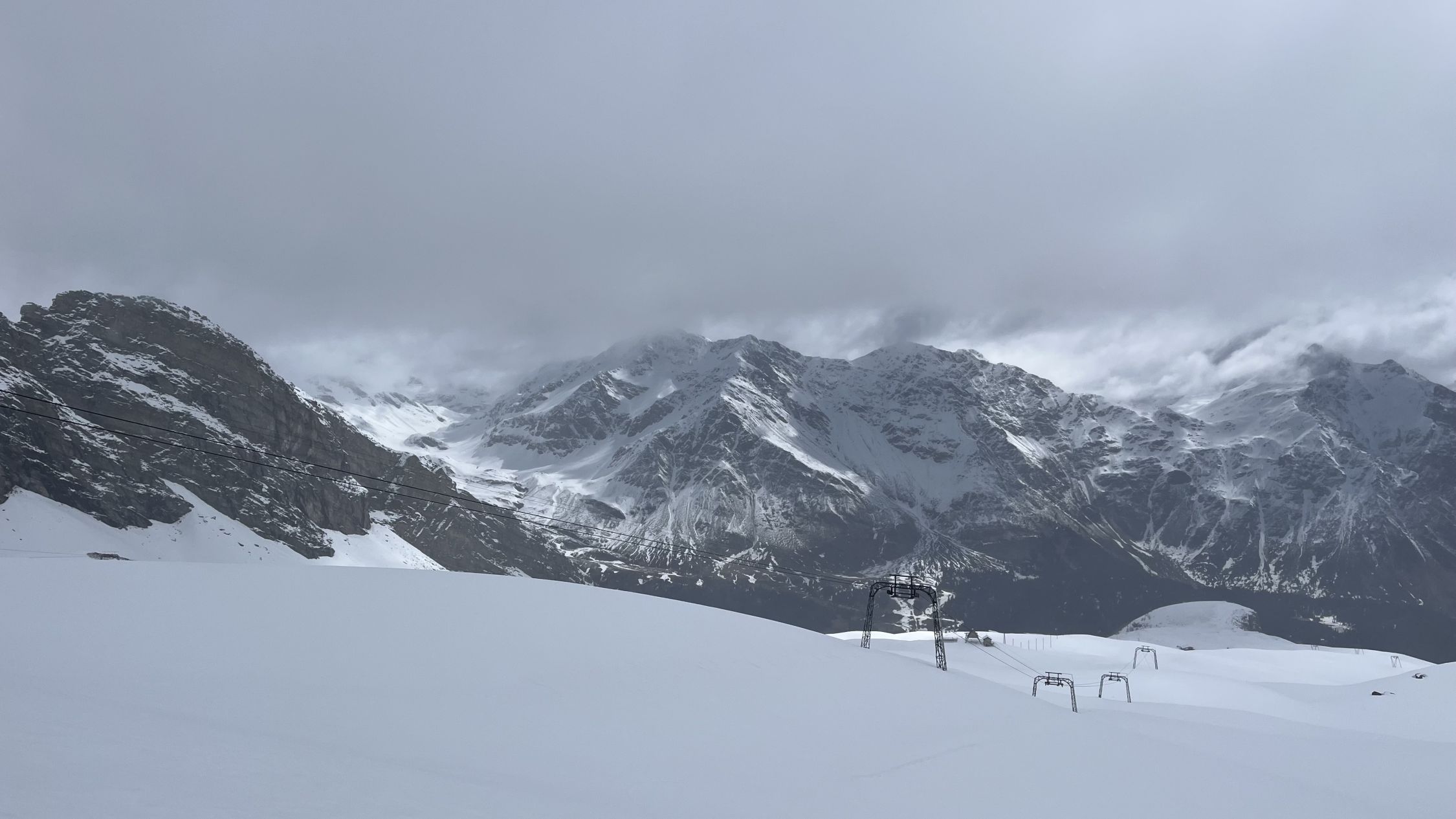 Wohin also? Meteoblue versprach für die Region Graubünden am meisten Sonne in Roveredo. Da sich dort jedoch die Schneehöhe in Grenzen hält, gilt als Kompromiss San Bernardino, das sich heute genau auf der Wettergrenze befand.