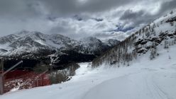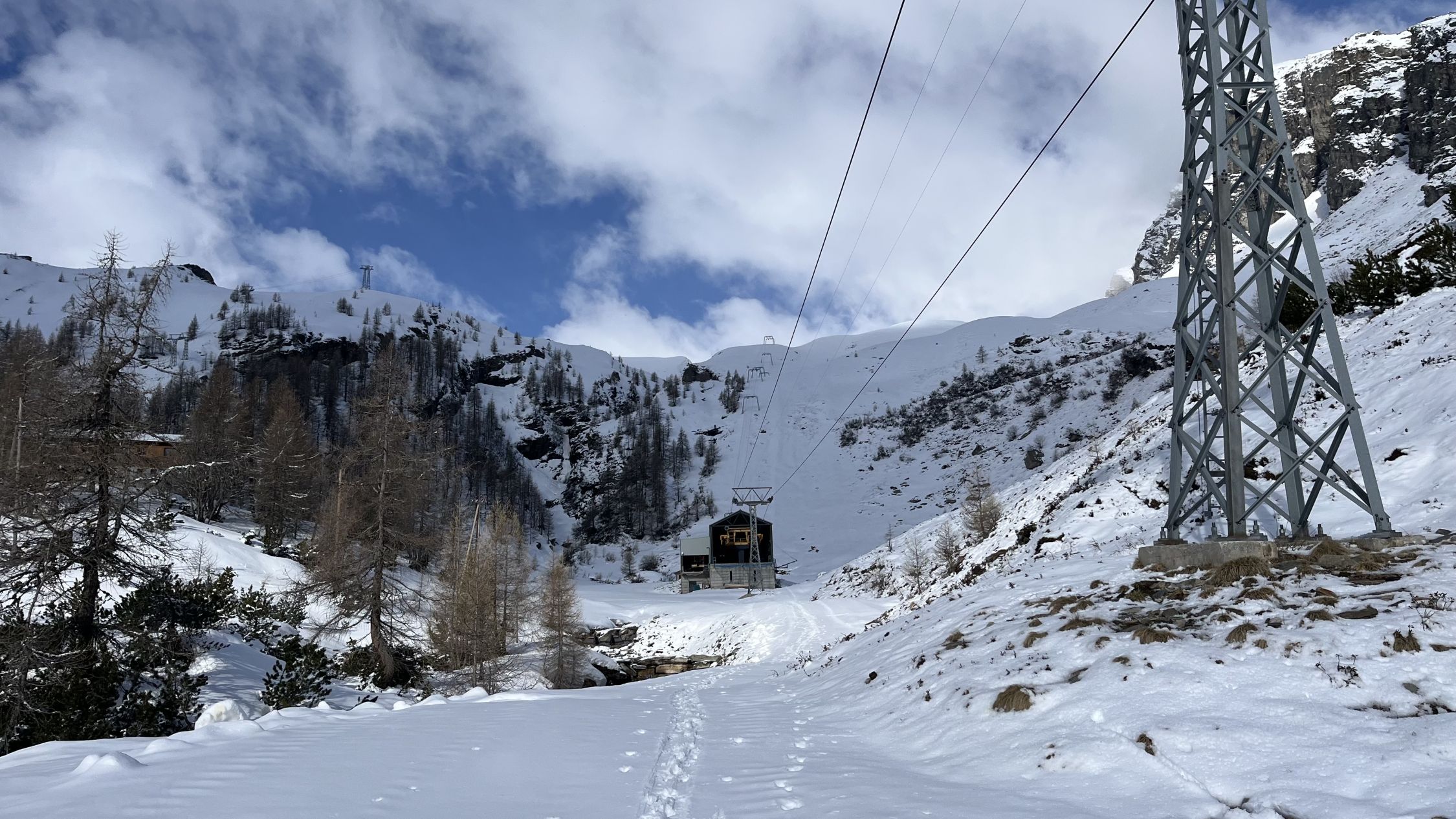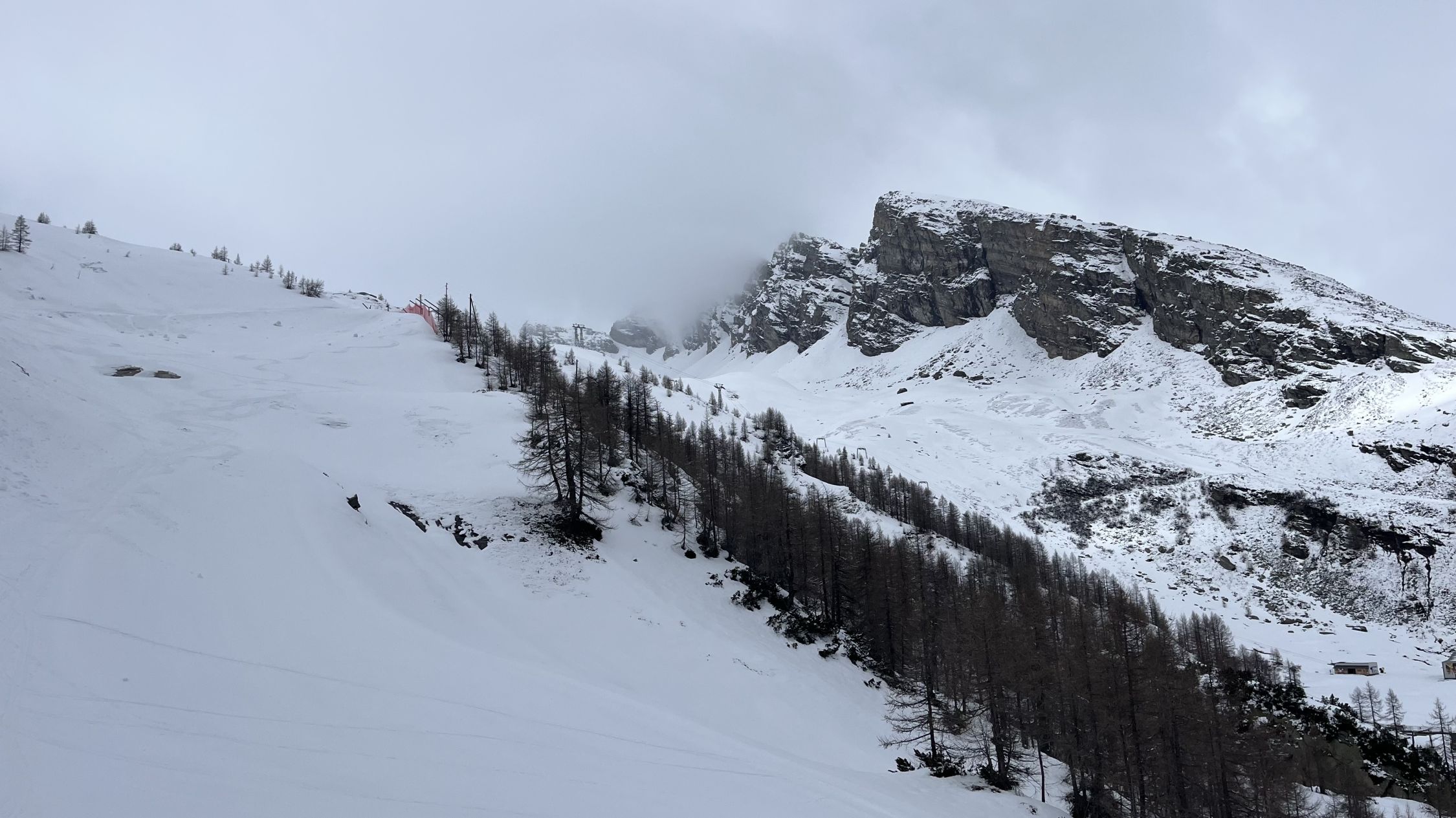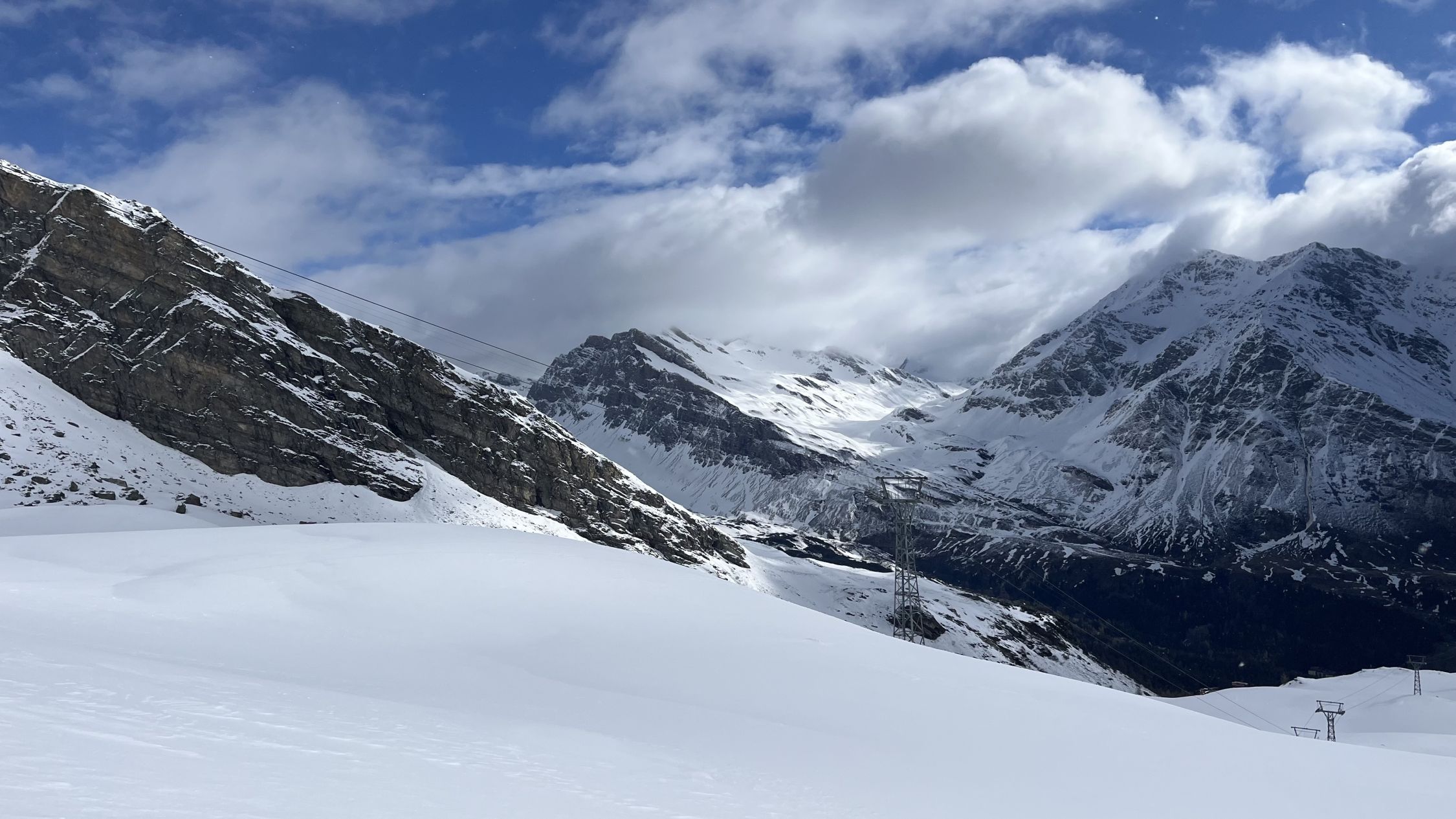 Wohin also? Meteoblue versprach für die Region Graubünden am meisten Sonne in Roveredo. Da sich dort jedoch die Schneehöhe in Grenzen hält, gilt als Kompromiss San Bernardino, das sich heute genau auf der Wettergrenze befand.