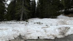 Zwei Einheimische, Vater und Sohn, kamen mir bald von unten in meiner Spur entgegen. Der Vater, vom Tiefbauamt, bestätigte, dass der San Bernardinopass wegen Bauarbeiten nicht vor dem 1. Juni für dem Personenverkehr freigegeben würde. Also keine Abkürzung fürs Zapporthorn…