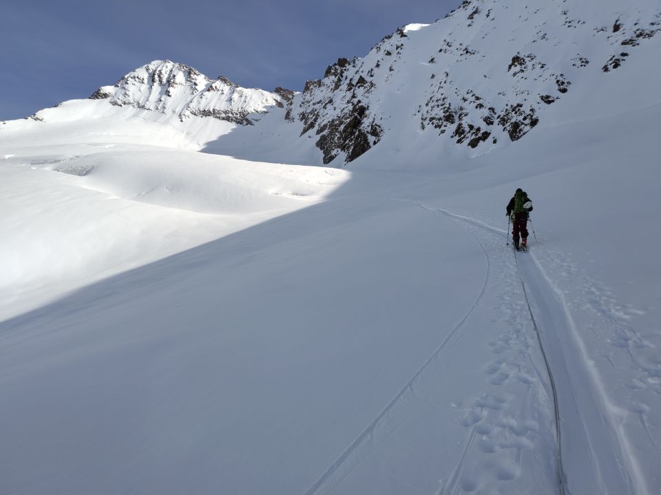 Super Trittschnee im Aufstieg zum Fieschersattel
