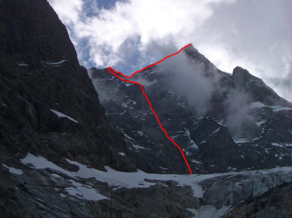 Punta Giordani (4046m): NE-sporn der "cresta del soldato" und SE-grat der pt. giordani