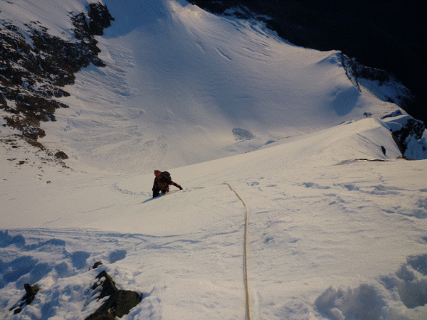 Lenzspitze-NO Wand wurde am Sonntag auch abgefahren