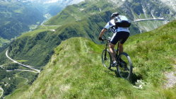 um einen schönen Mountainbike, mit dem Sie auf die Beine geholfen erlaubt ist nicht sehr hoch, aber die unglaubliche Aussicht auf die 3000m Bedrettotal, Dom, The Group auf die Jungfrau und die Rhone, Fonds gepflegt