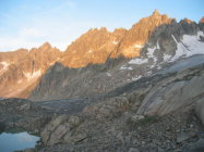 Auf dem Gletscher liegt nur noch wenig Schnee. Zustieg ist im Moment noch ohne Steigeisen machbar. Pickel ist bis zum Einstieg empfelenswert. Es hat noch einige Schneefelder, die heute morgen schon recht weich waren.