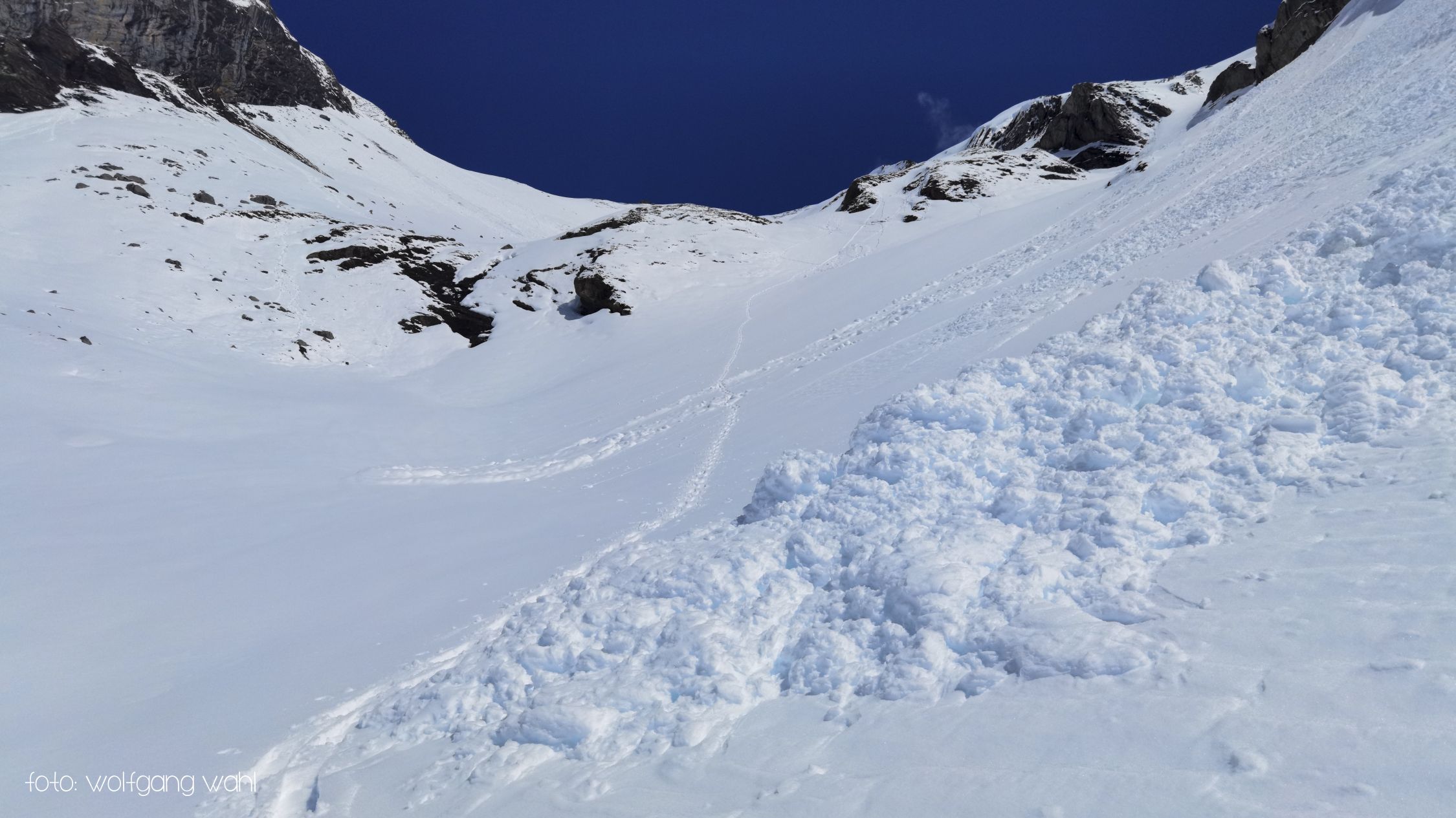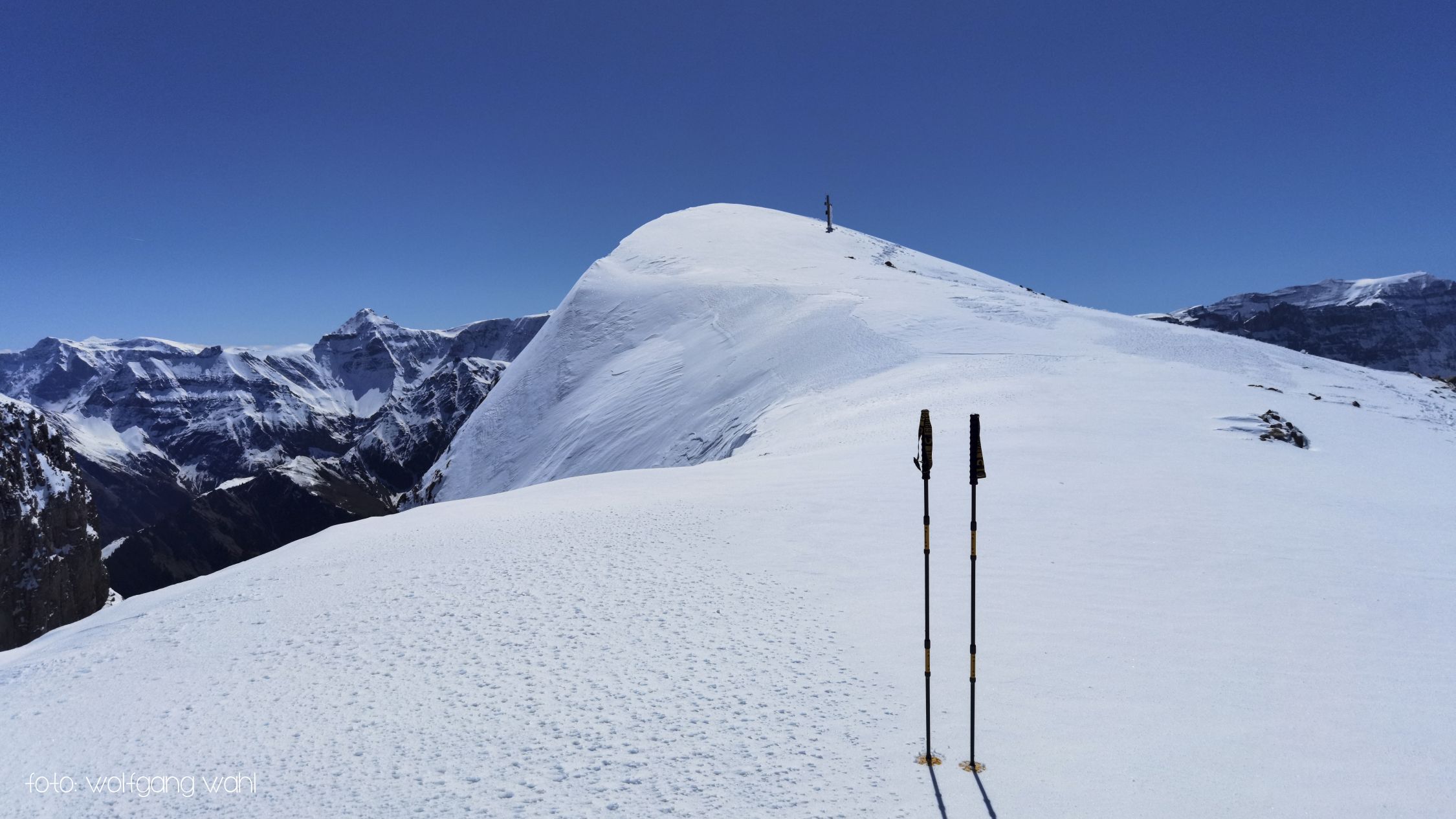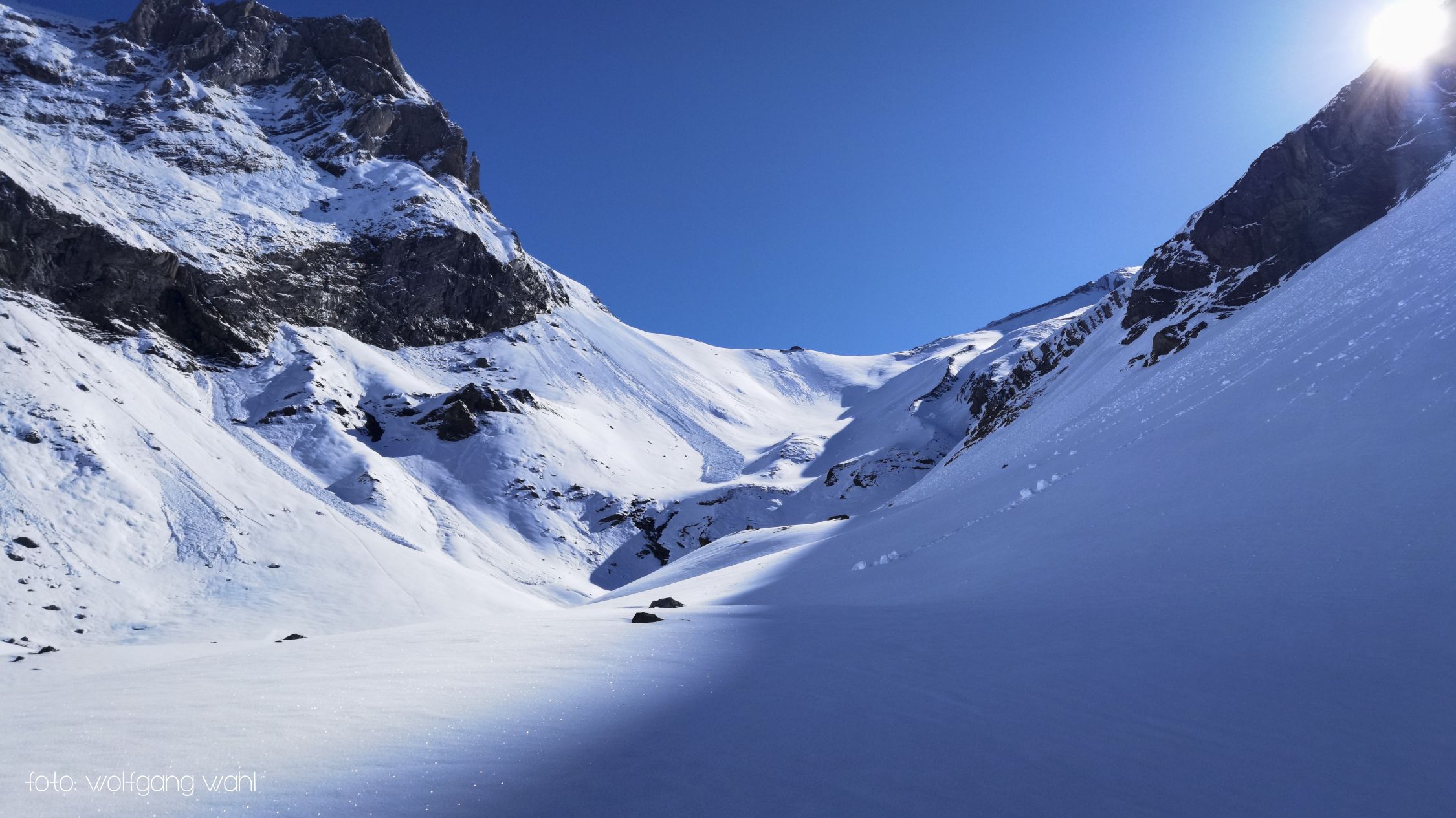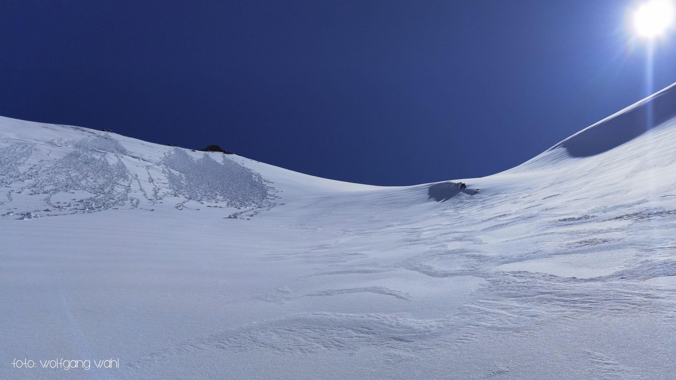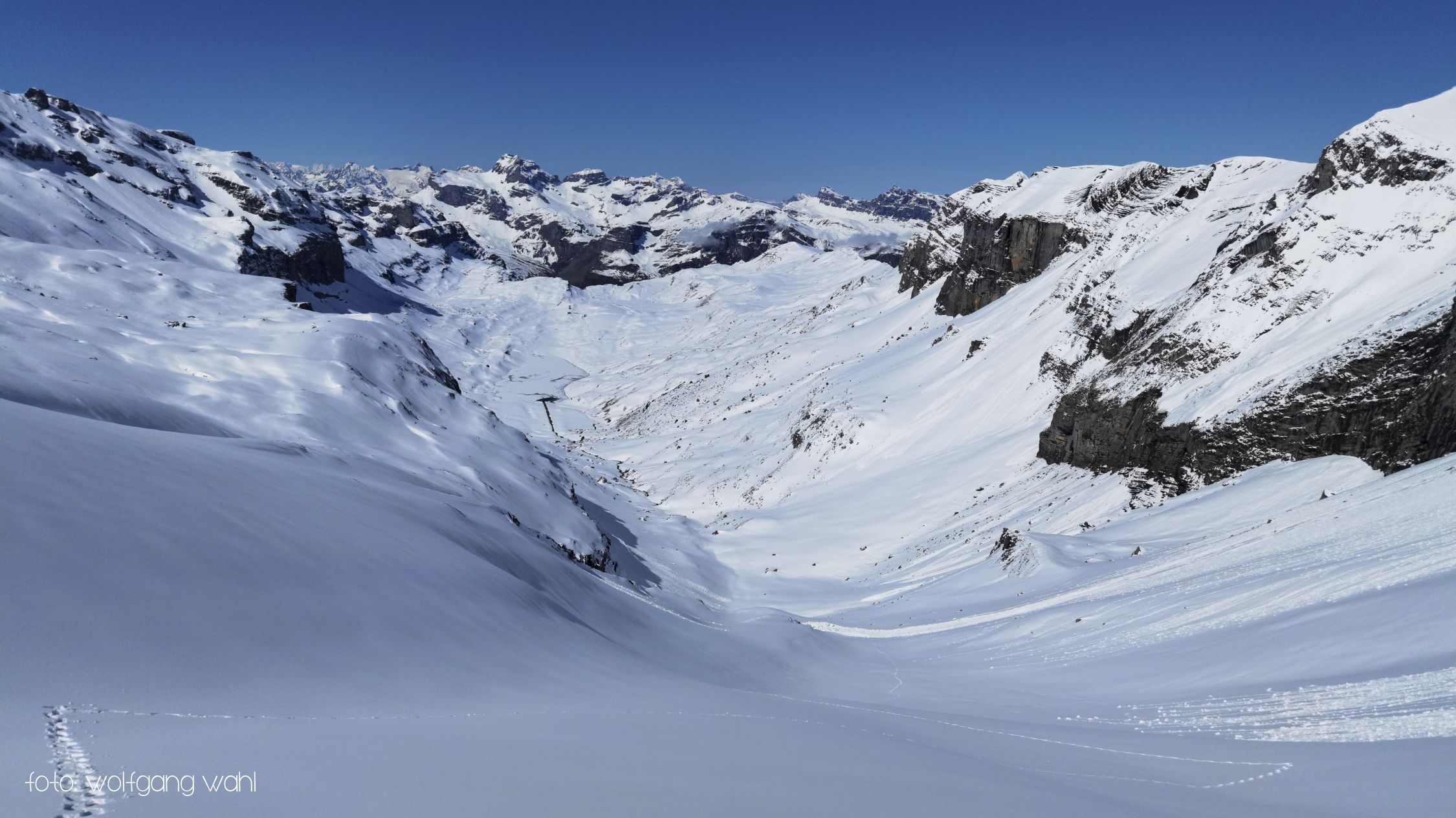 Absolute Hammer-Tour bei perfektem Wetter! Weit und breit keine Menschenseele und auch keine Spuren zu sehen… den ganzen Tag neue Spuren im Neuschnee ziehen. Beeindruckend waren die ständigen Lawinenabgänge auf der Süd- und Südostseite des Höch Turen, jedoch in sicherem Abstand zu meiner Route.